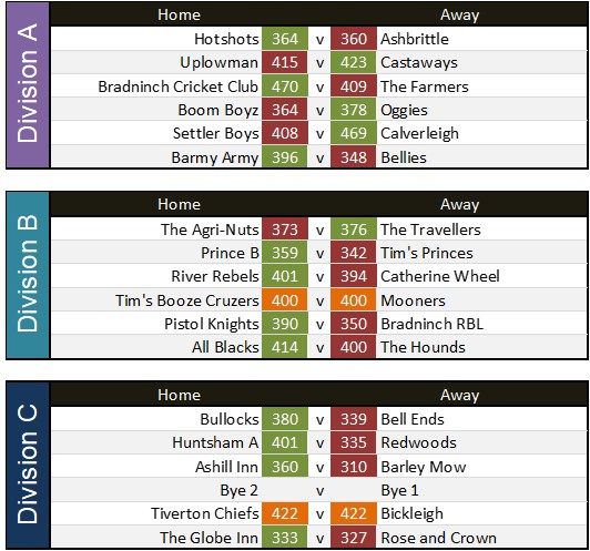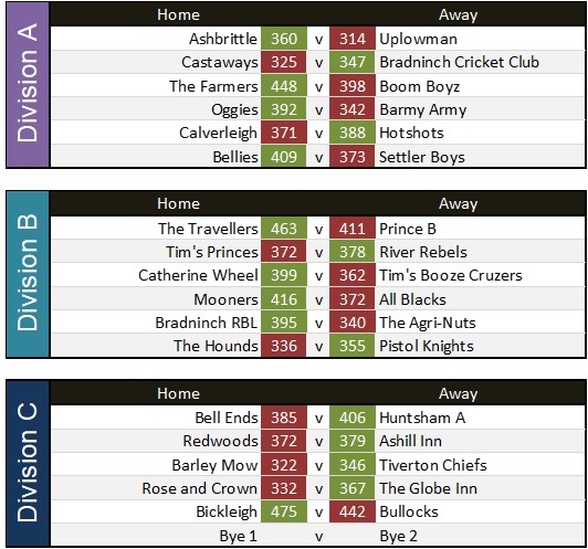 Globe Inn 316 v 320 Barley Mow reverse game with next weeks match