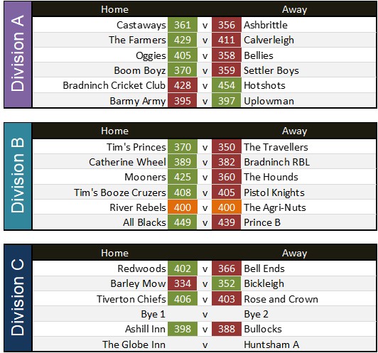 Globe Inn 316 v 320 Barley Mow reverse game with next weeks match