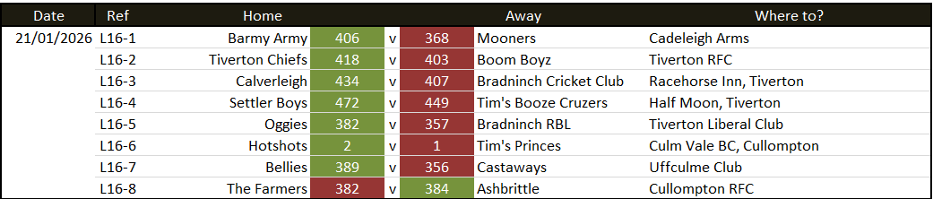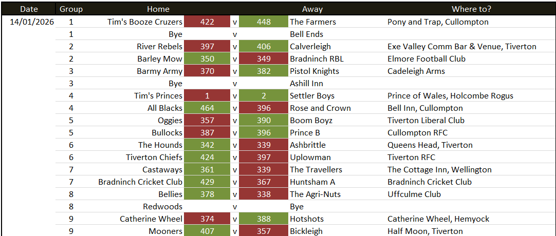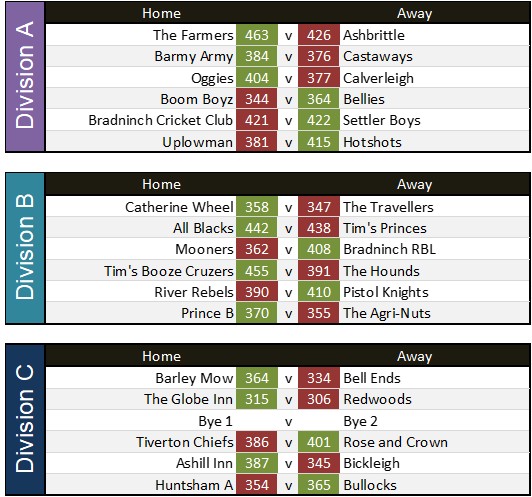 Globe Inn 316 v 320 Barley Mow reverse game with next weeks match