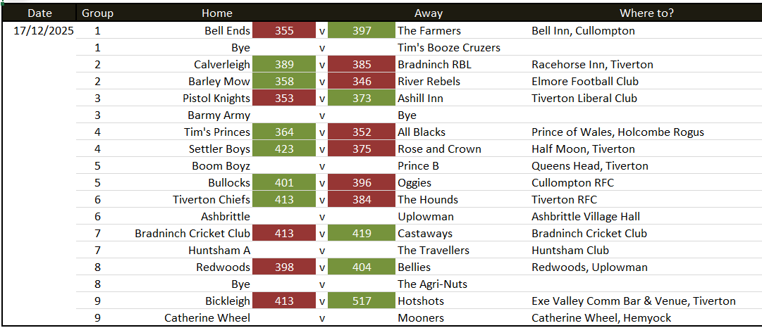 Any blank results without an explanation have not been submitted to results@spskittles.co.uk