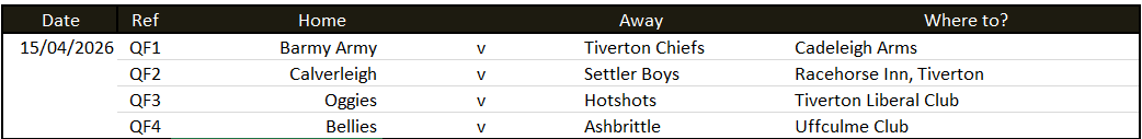 15/04/2026 – Cup Quarter-Finals