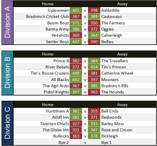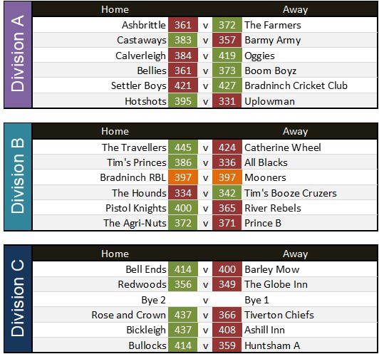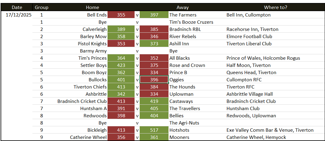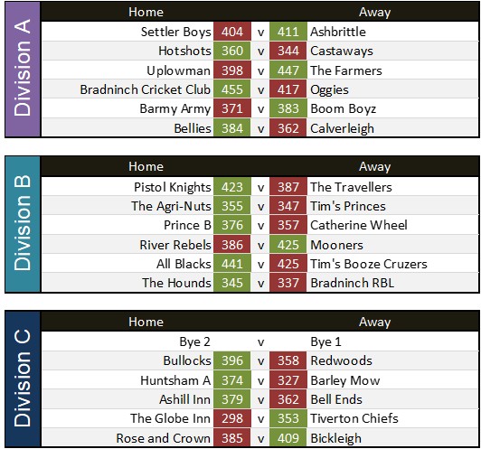 Globe Inn 316 v 320 Barley Mow reverse game with next weeks match