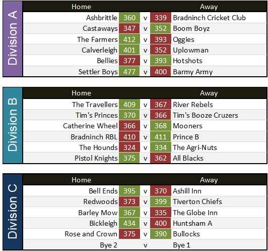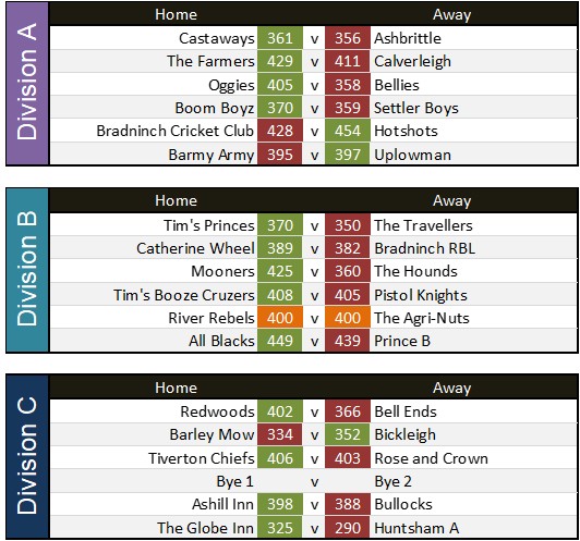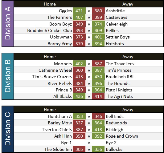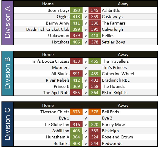 Settler Boys 415 v Tim’s princes 425 on night due to 12 pins deduction for Tim’s princes for late cancellation ruling final score Settler Boys 415 Tim’s princes 413