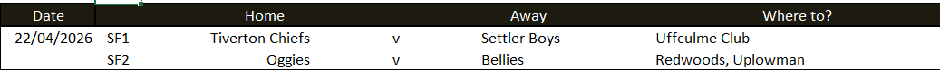 22/04/2026 – Cup Semi-Finals