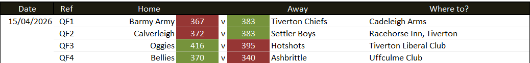 15/04/2026 – Cup Quarter-Finals